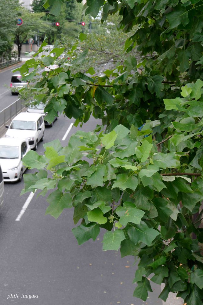 半纏の形の葉っぱの付くこの樹が,学生時代のキャンパスにあって,思い入れがあります。東京・横浜の今回の訪問でいろいろな場所で見ることができました。