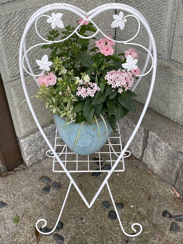 花台は友達の旦那さんに塗り替えてもらいました🥰おかげさまでつたない寄せ植えが花台に
