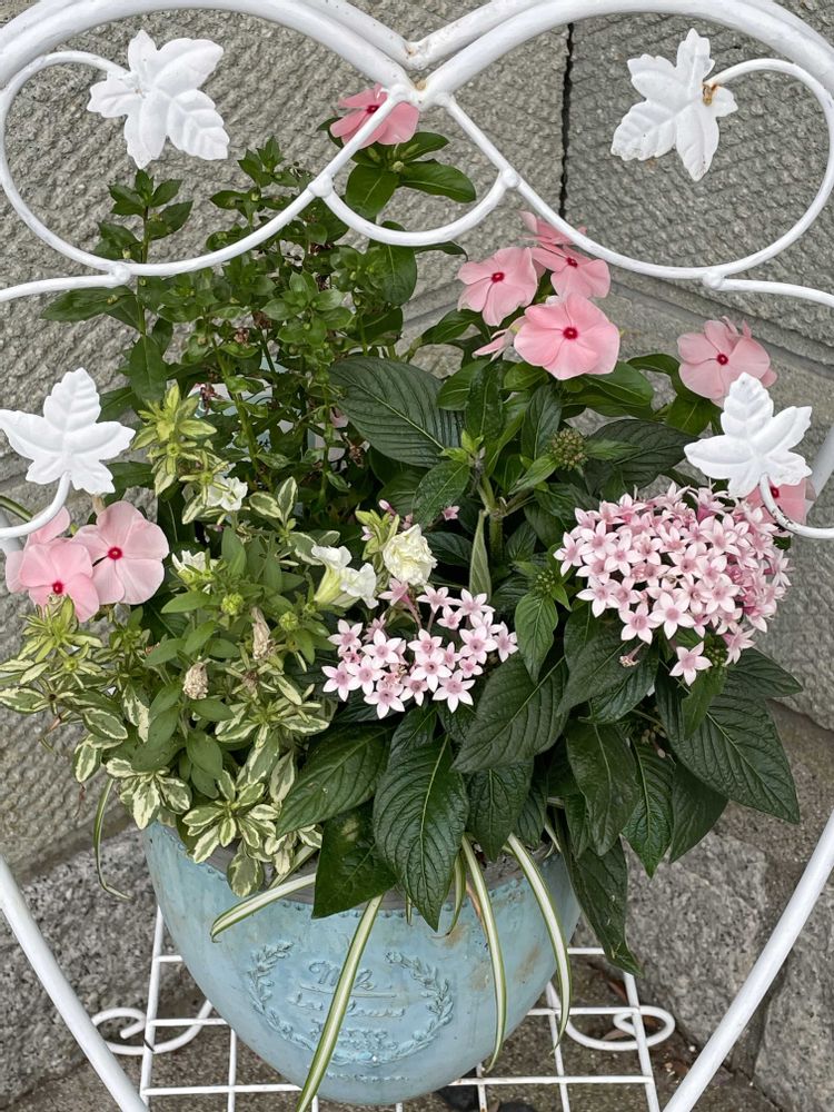 花台の白いリーフも寄せ植えを引き立てていますね💕︎
