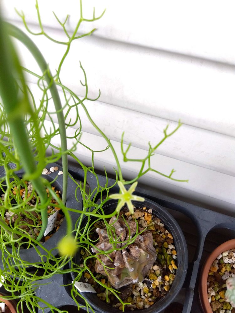 ベランダでソウカクデンの花が咲きました🎶隣のサボテンは日焼けで傷んでます❗️
