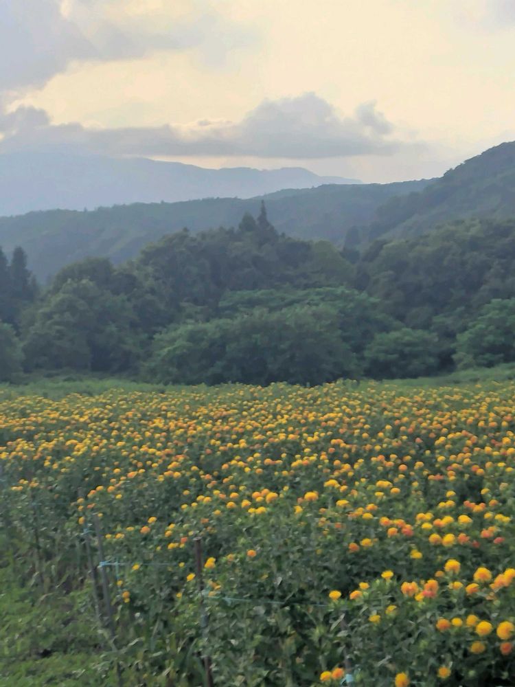 "大紅花畑"へ初めて行きました。ほぼ満開(斜面下の方はまだ蕾が多かった)