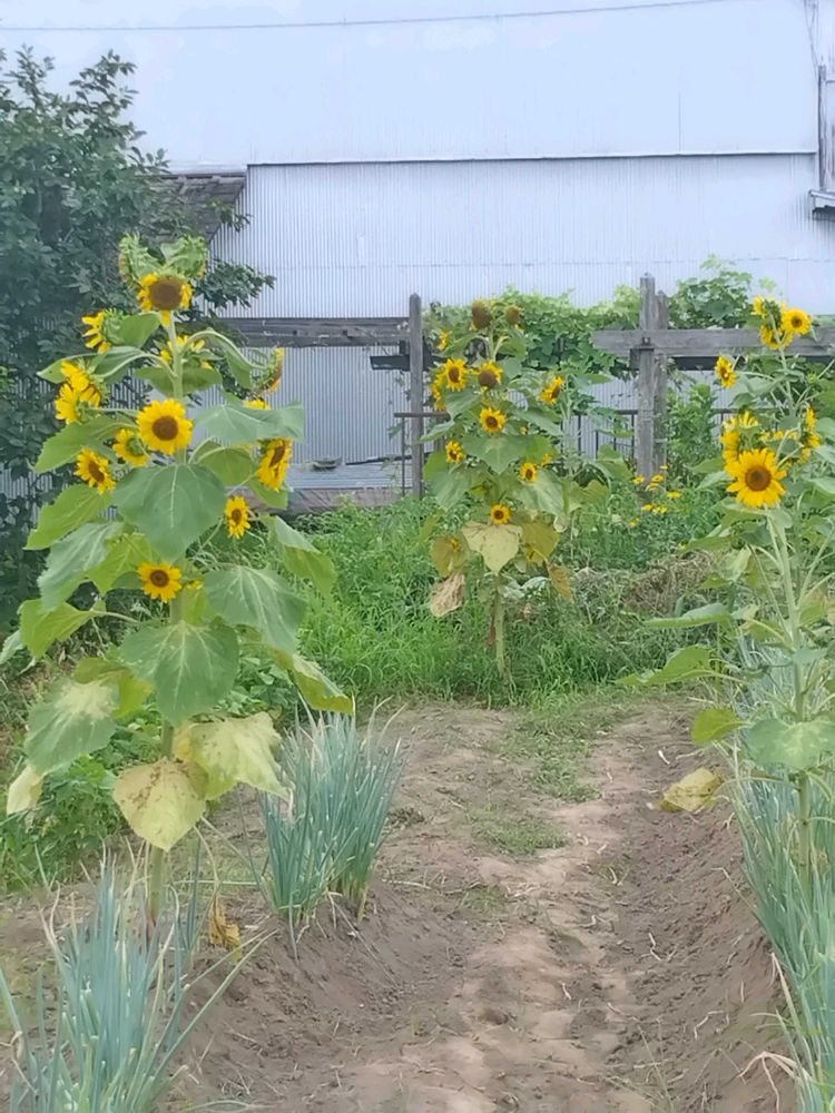 ② 我が家の畑の中の向日葵です。画像に写って無い場所にも向日葵が咲いてますが今年はいっぱいの花を咲かせてます🌻