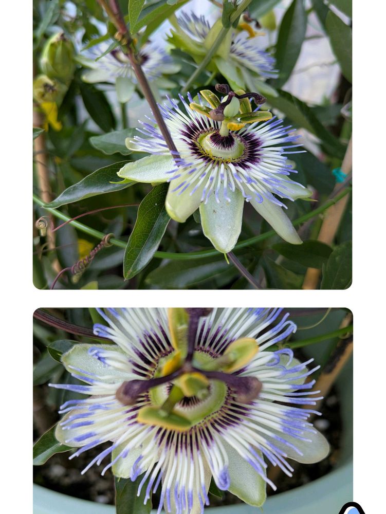 4️⃣鉢育ちの支柱のトケイソウの花が初の4輪咲き😘💕