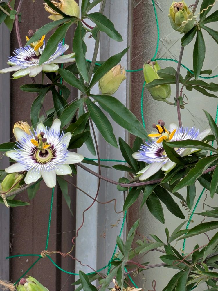 5️⃣ネット張りのトケイソウ10輪咲きました🫢仲良く近くに咲くお花を3輪撮れました✌後はバラバラに💦