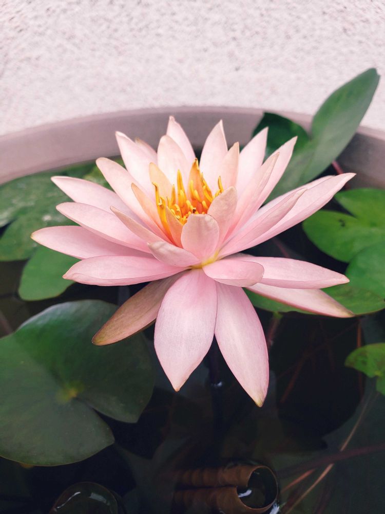 ここ数日のお天気で、まだ梅雨が明けていないことを思い出しました。スイレン鉢に一番花が咲き、パッと明るくなりました。
