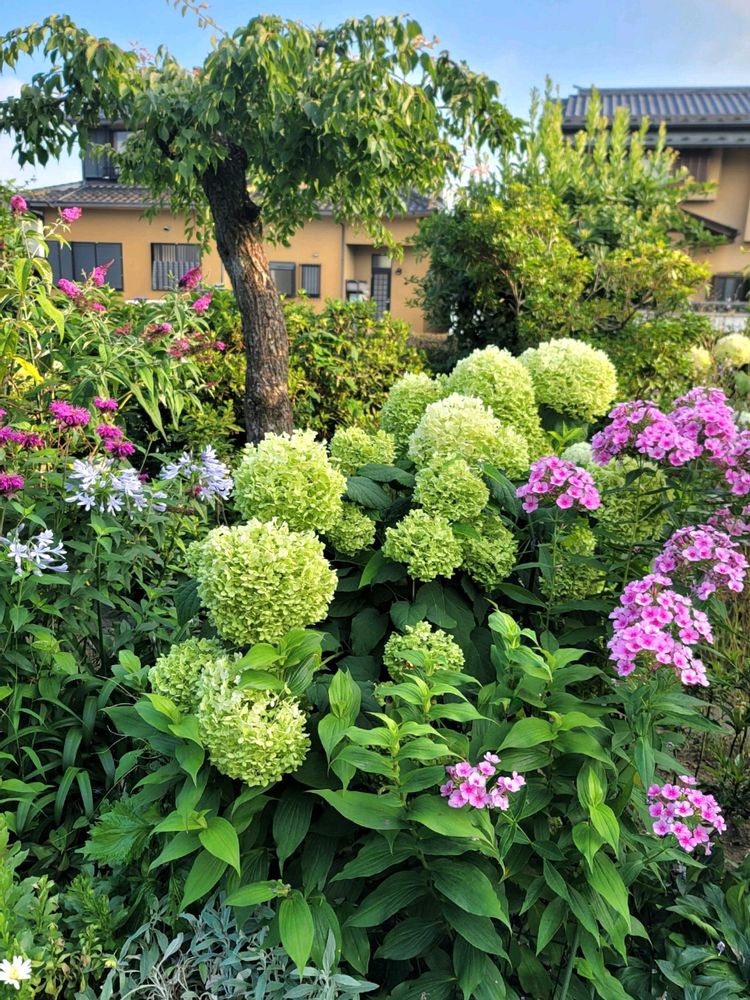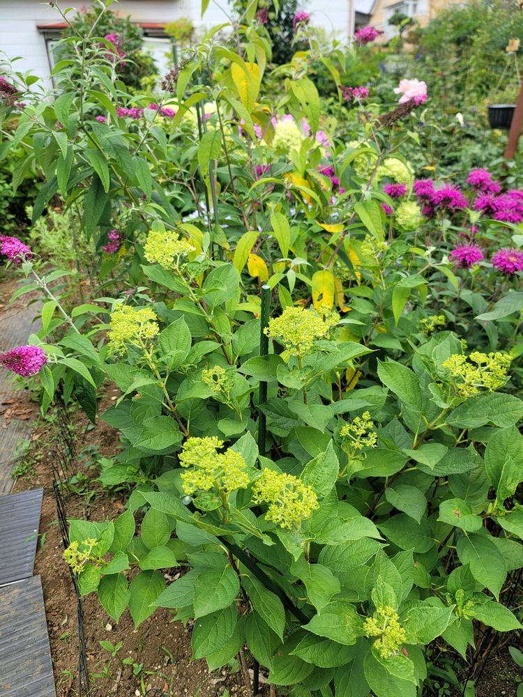 今年は中央に植えた❀アナベル❀が大株になり✨沢山咲いてくれました💚大雨の時大分折れてしまったのですが❇️残ったのが大きなグリーンボールになってくれたようです💚🌿