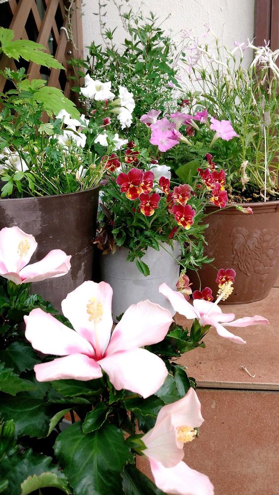 ハイビさんとパンジーが同席するなんてって感じですけど しかも冬咲きパンジーと名前までついてるのに案外 暑さにも強いらしい🤭