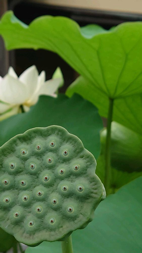 ⑤花後の花托に蓮の実が