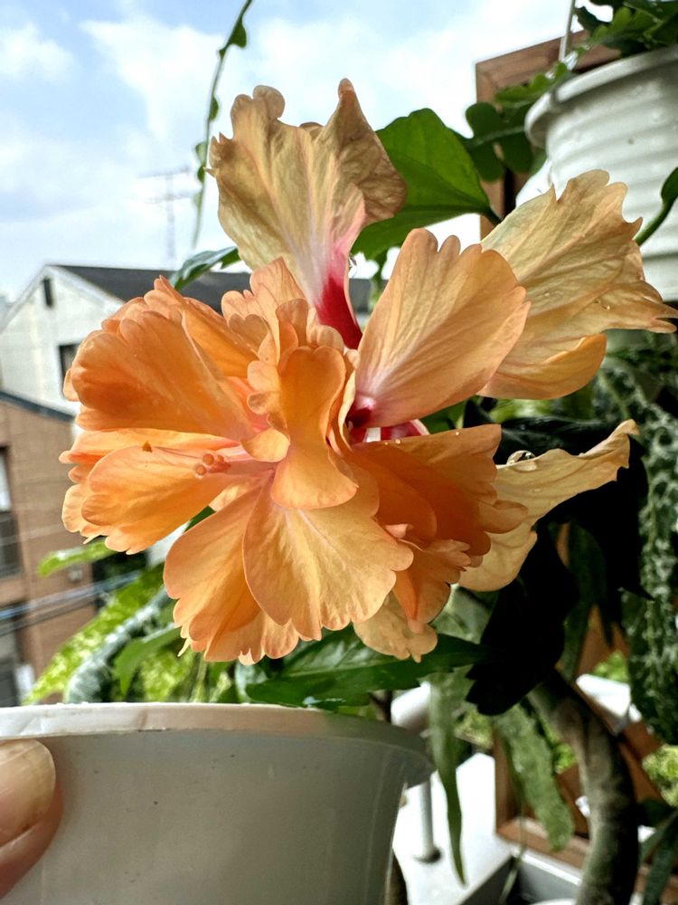 ベランダのハイビスカス・フラミンゴが咲きました🦩