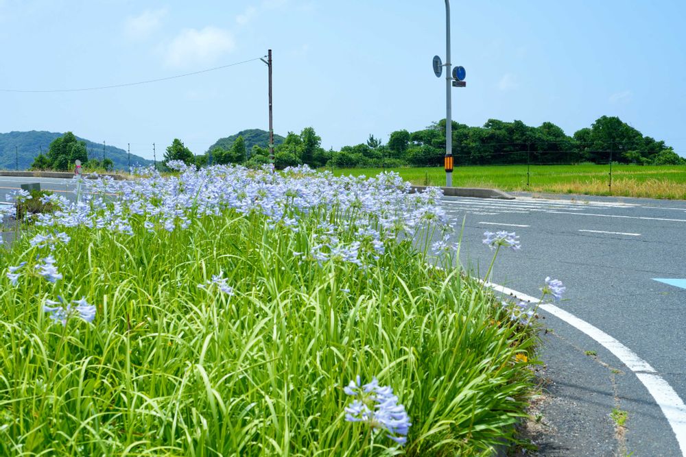 丹後半島の日本海側で見つけたアガパンサス畑。