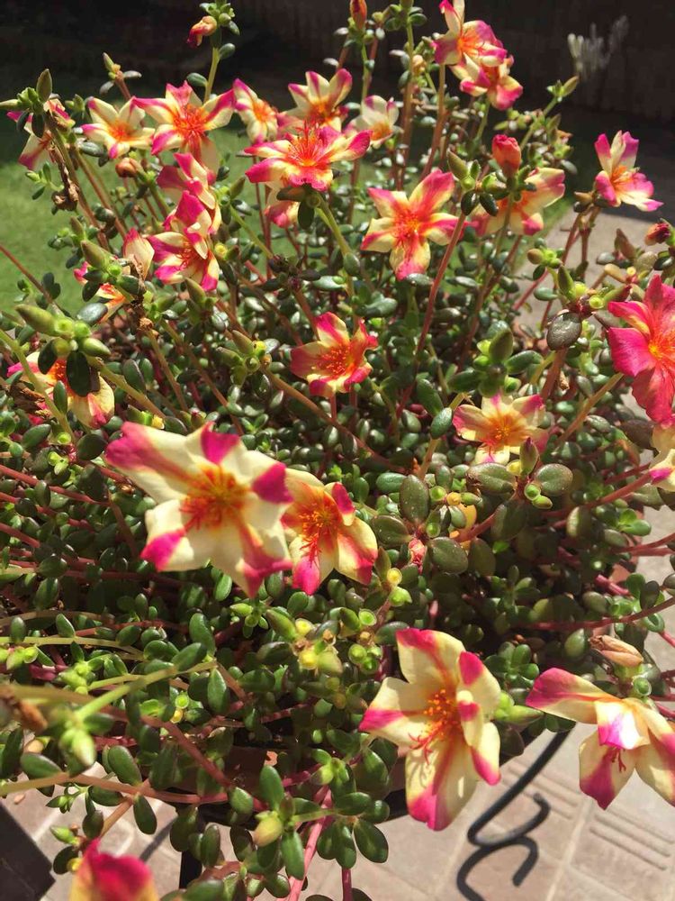 台風が来るので昨日は玄関の中に避難していたポーチュラカ。