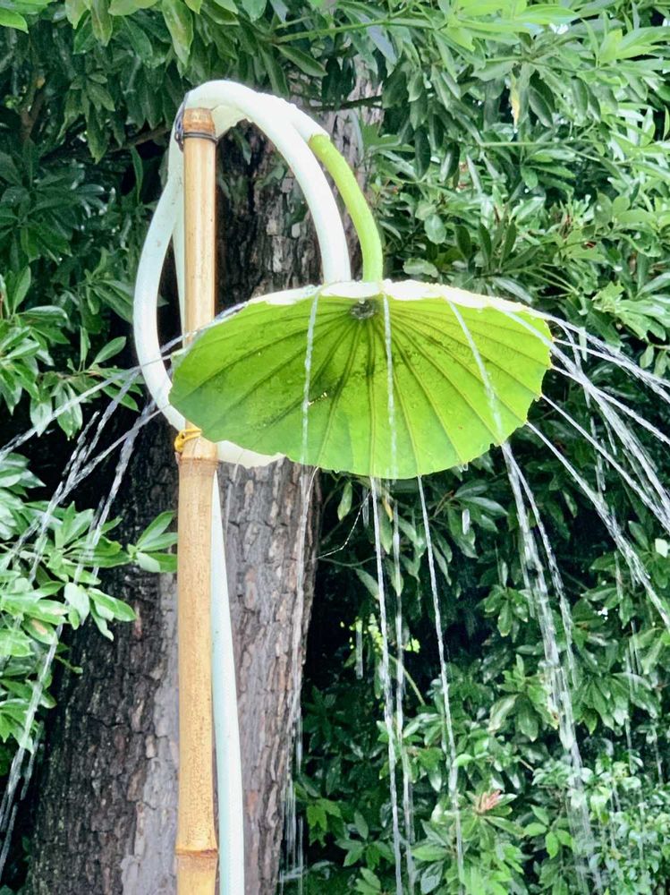 蓮の葉から落ちるシャワーがとっても涼しげで素敵なんですね🚿