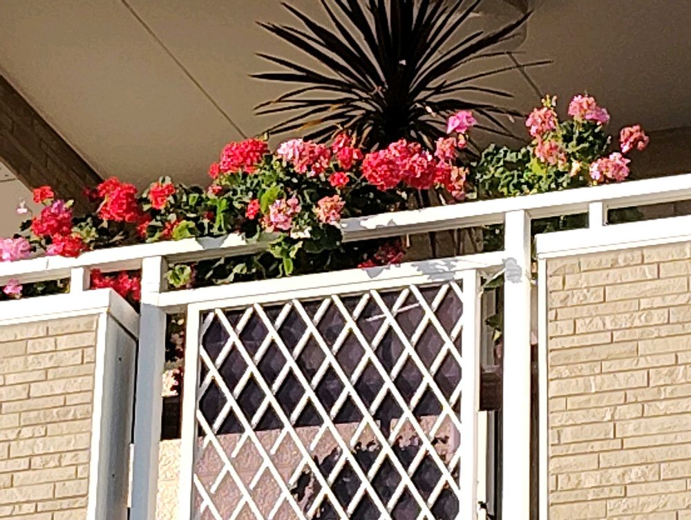 ベランダの手すりにフック式プランターで植え付け飾られてるのかしら?