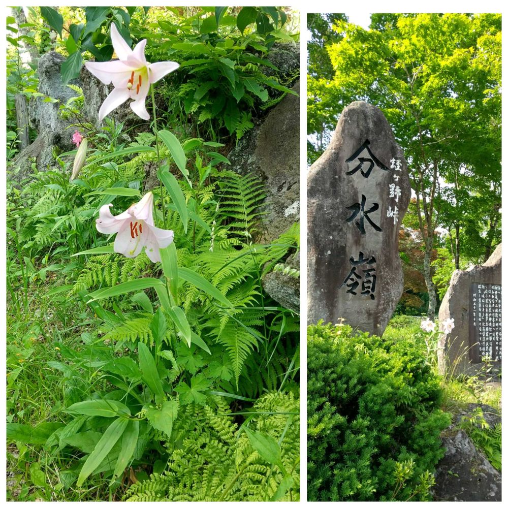 大日ヶ岳から流れてきた水は、標高875mのひるがの高原で分水嶺を境に南と北へ分かれて太平洋と日本海に流れて行きます。