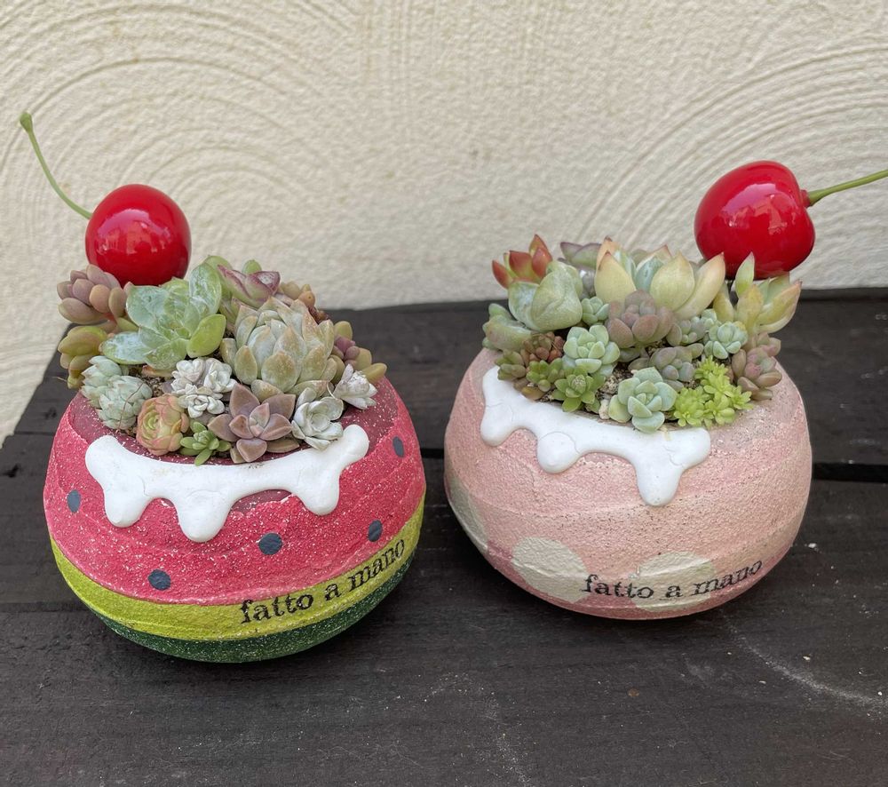 イベントで購入したモルタル鉢に寄せ植え🌱