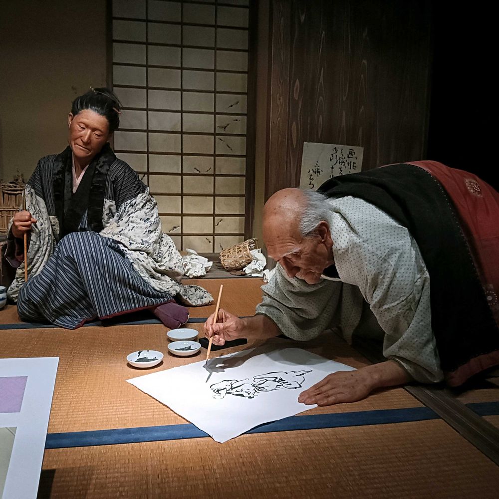 最後のお写真が晩年の北斎のジオラマです。そういえば「北斎漫画」ってへんな映画あったよね。