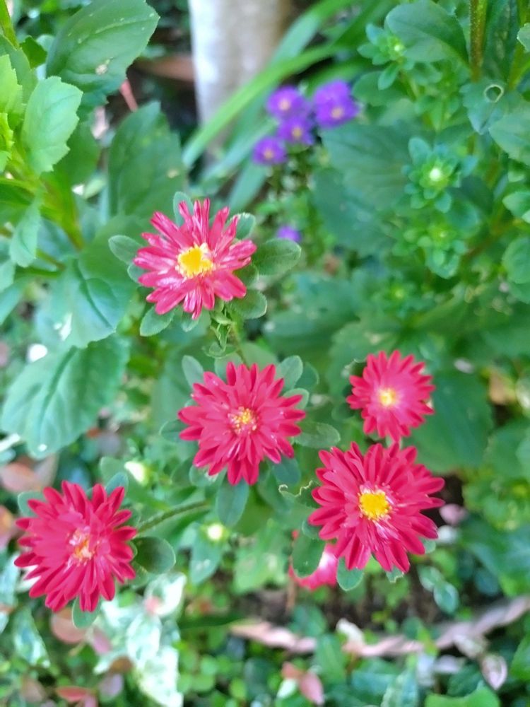 ①②小5の孫が種まきして、4月末にもらたアスターがやっと咲き出しました。💕