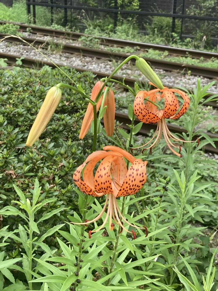 1️⃣2️⃣3️⃣都電線路脇🛤️に咲いていました【オニユリ🧡】🎵色鮮やかです😆