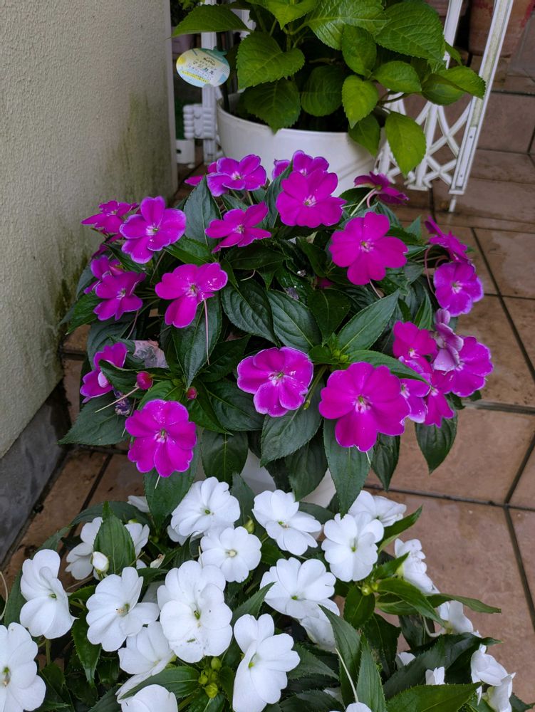 その中で、3色のサンパティオが綺麗に咲いてくれる。8号鉢に植えたので、横張りは40~45cmに達している。