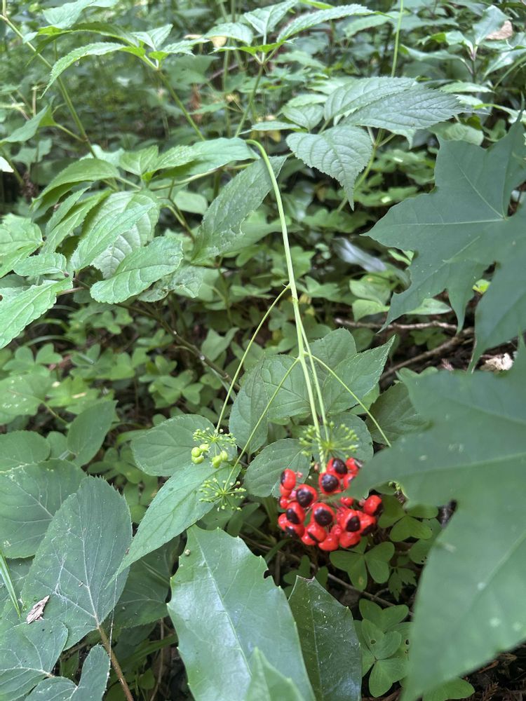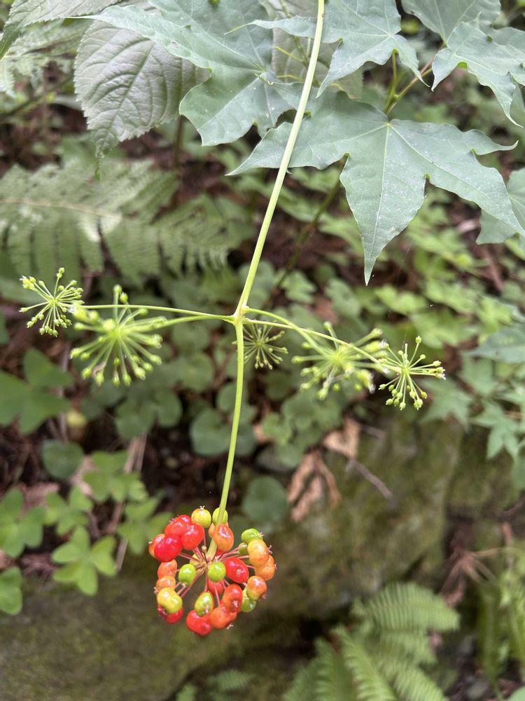 さん✨こんばんは😊実の先が黒くなるのは、ソウシシヨウニンジンなのですね🌟調べてみたら、「相思子様人参」ウコギ科トチバニンジン属。実の先が黒く塗った様で、不思議ですね。