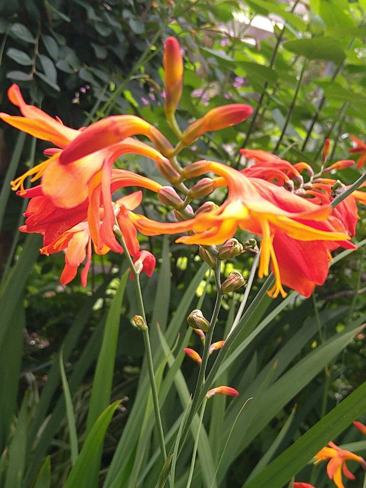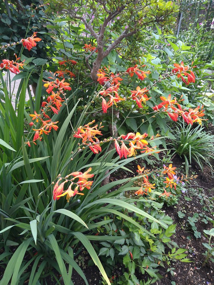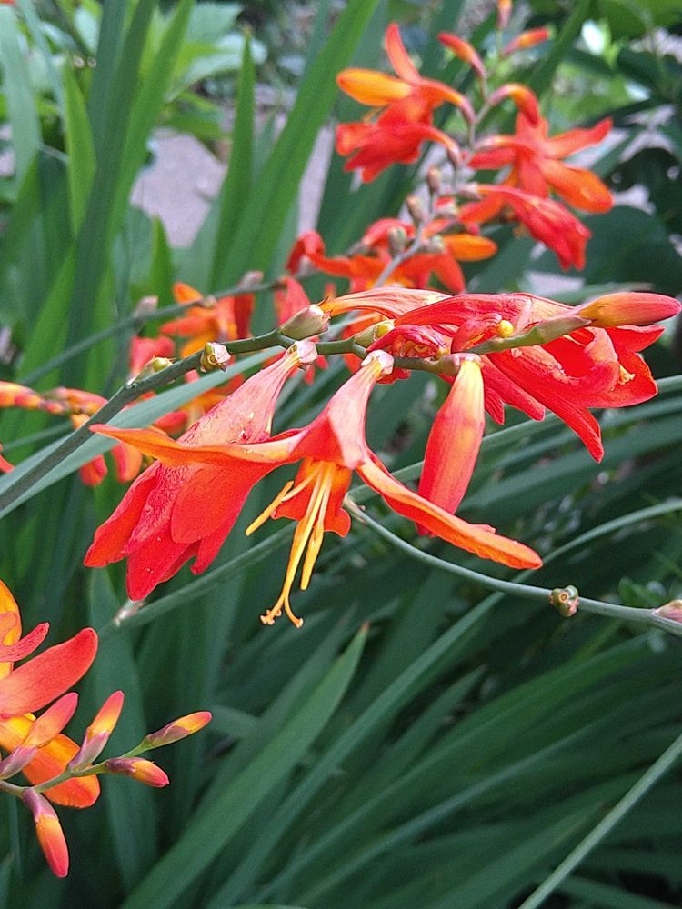 ヒメヒオウギズイセン、綺麗に咲いてますね😄私の所もサラダばぁさんちの色と同じオレンジ色ですが、今日散歩道で、もっと濃い色のヒメヒオウギズイセンを見てきました😆蜘蛛の巣🕸️がかかってたので,残念ながら🤳は、して来ませんでしたが,初めて見ました😅