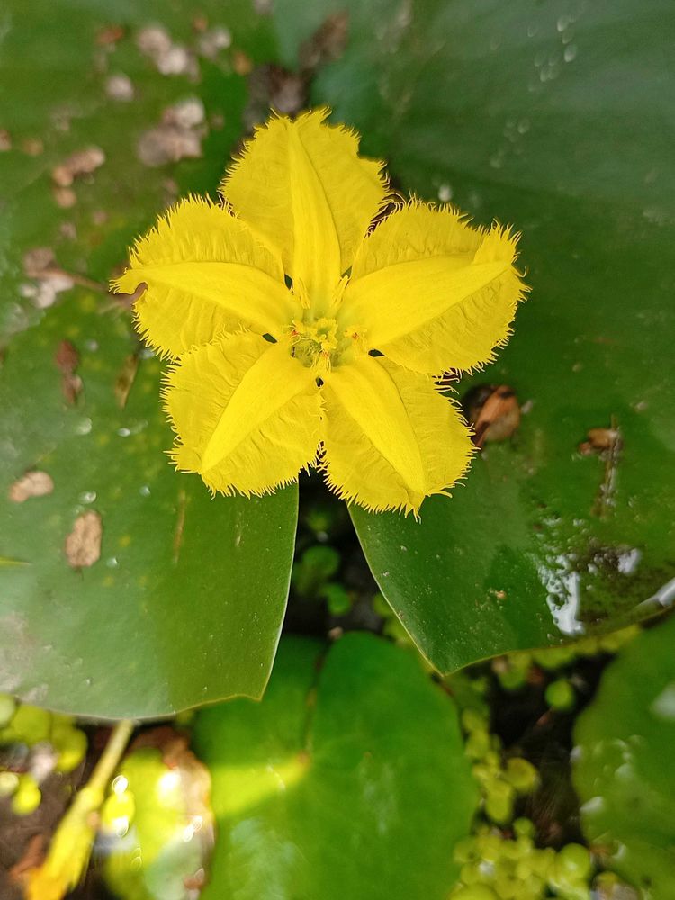 アサザの黄色い花弁のフリフリがたまらなく好きなんです😊