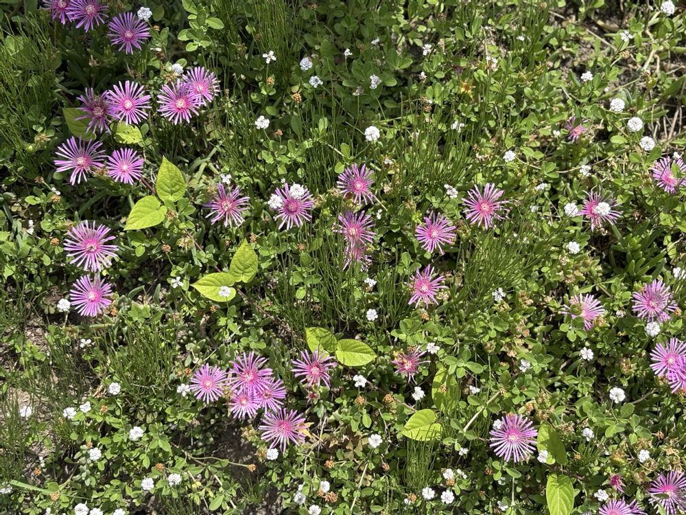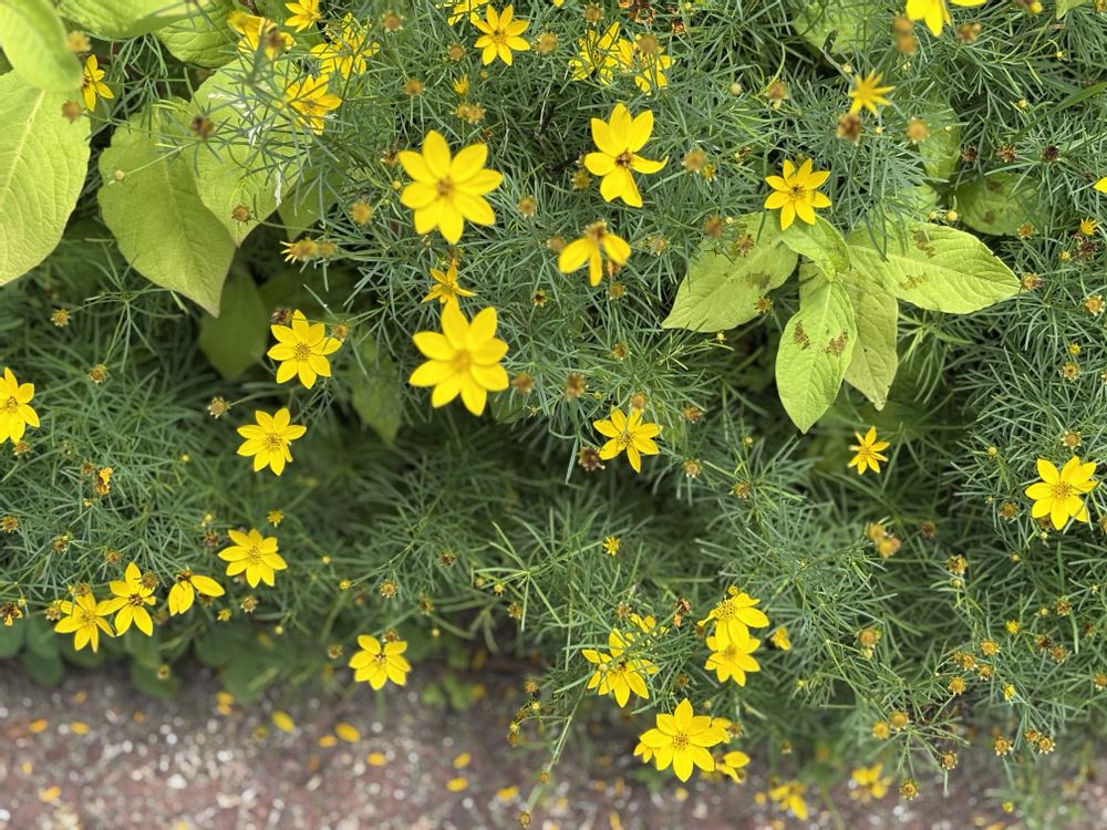 💛🩷🩵💜💚歩道沿いの花壇のお花たち
