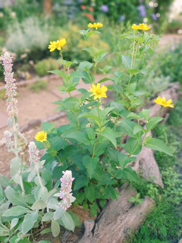 これは…ヒメヒマワリ?かな。植えてたラムズイヤーとの葉色のコントラストがいい感じかもです。