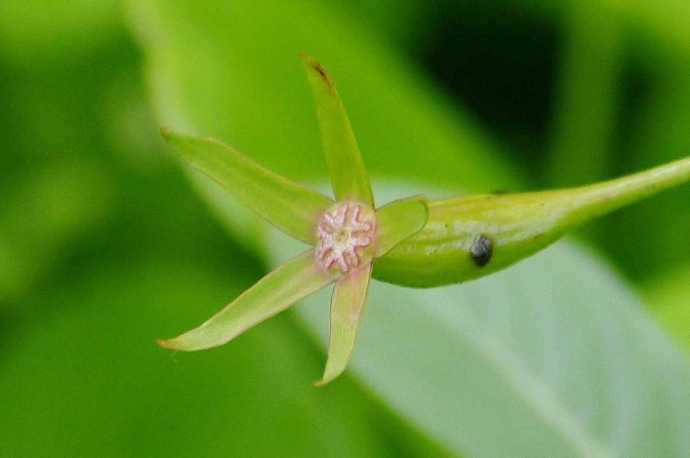 若い果実は萼片が残ってて こんな姿。長さ1.2~4㎝、直径2~5㎜、無毛です