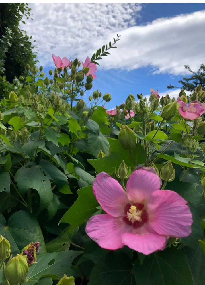 よく似たムクゲは立ち性で、まとまりやすいけど、フヨウは横に広がりがちな樹形🍃
