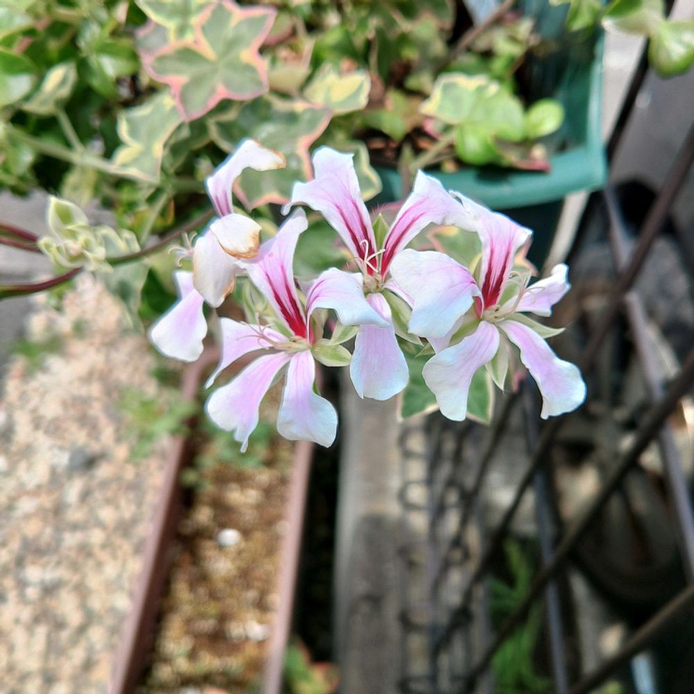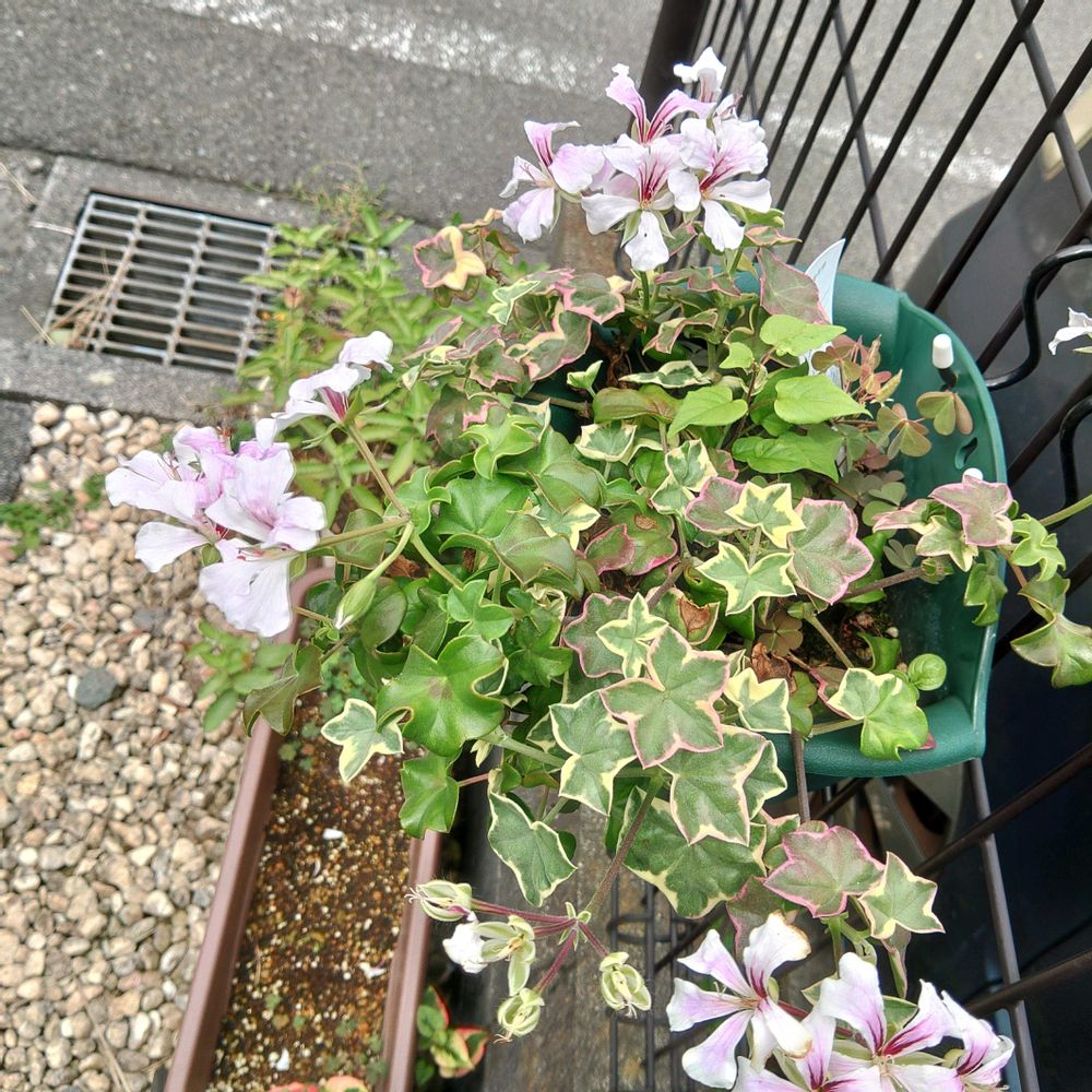2、この鉢植えのアイビ―ゼラニウムエレガンテは、6日から咲き続けてくれてる💚🤍🤍🤍💚💕