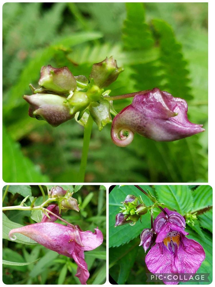 ③こちらがツリフネソウ、ムラサキツリフネの名前も。