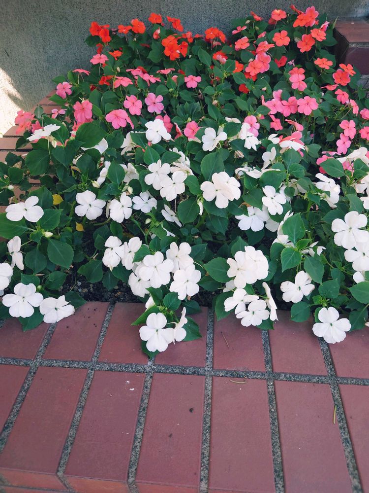 北側&木陰であまり日当たりが良く無い花壇に植えた、インパチェンスがモリモリに🌺