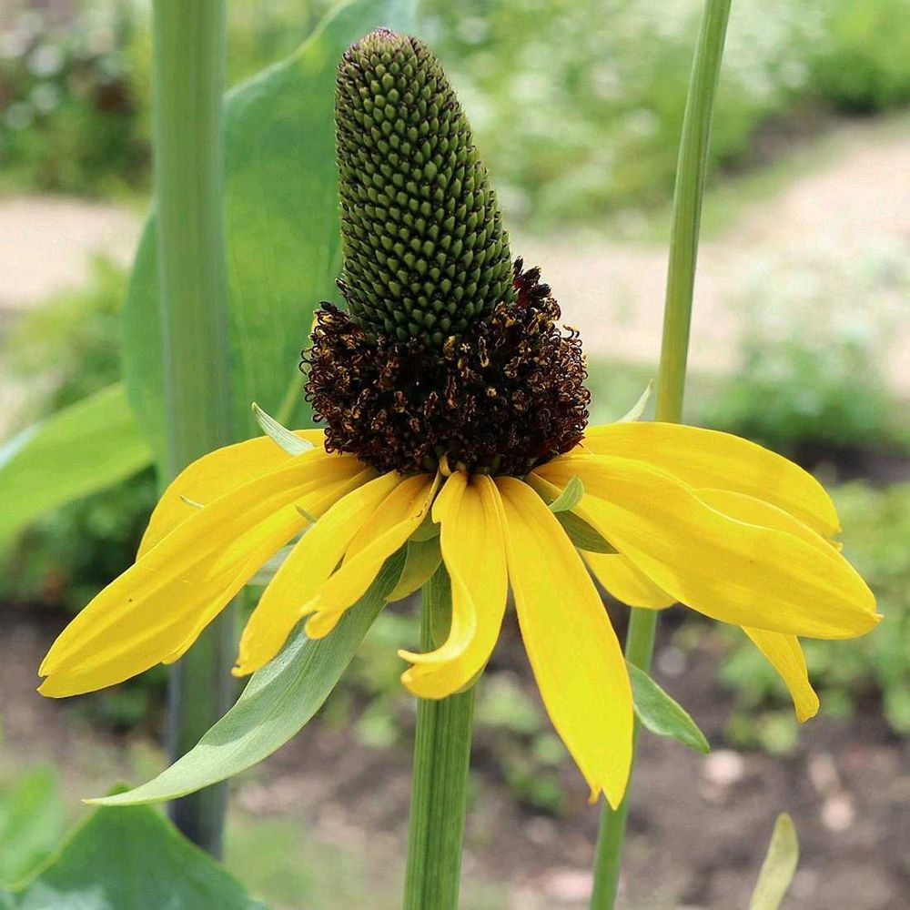 夏に草丈2m前後に伸びた頂点に黄色い花が咲く原種のルドベキア。