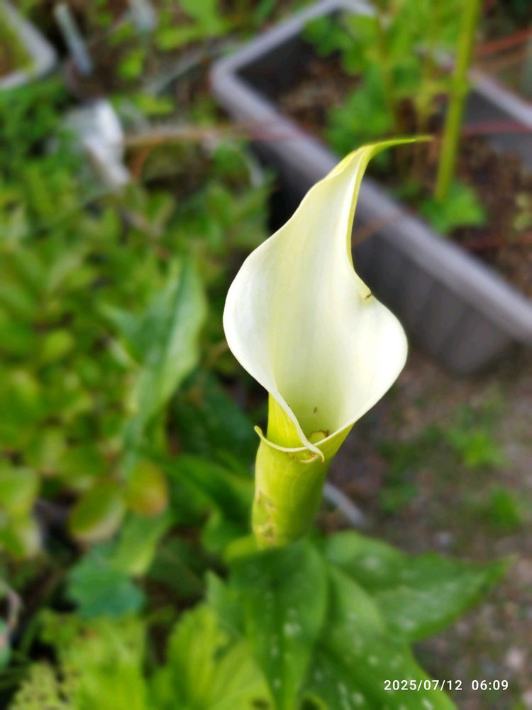 カラー綺麗に咲いていていーな!うちは葉っぱだけ😅