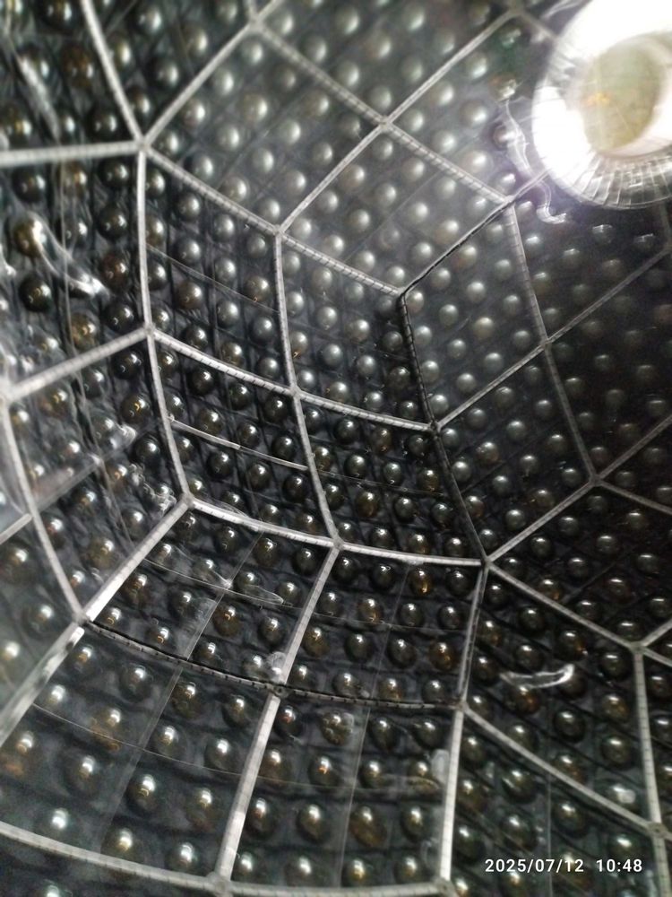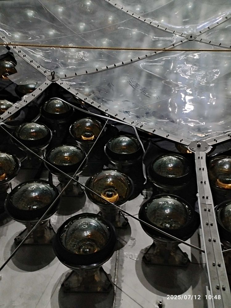 球体の直径は18メートル 50センチメートルの光電子増倍管が1879本取り付けられているそうです