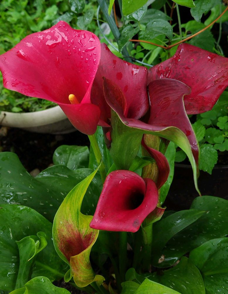 カラーの寄せ植えもいいね。