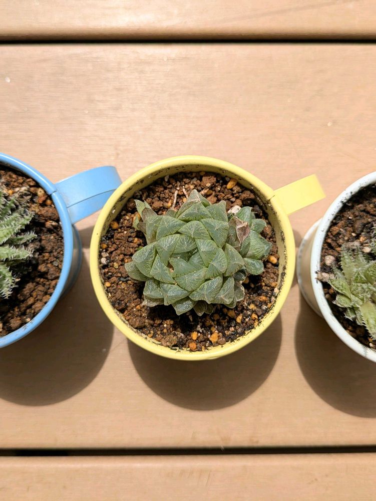 ハオルチアちゃん達もですが…鉢も台もペールトーンで統一されていて、素敵ですね✨写真も綺麗で✨