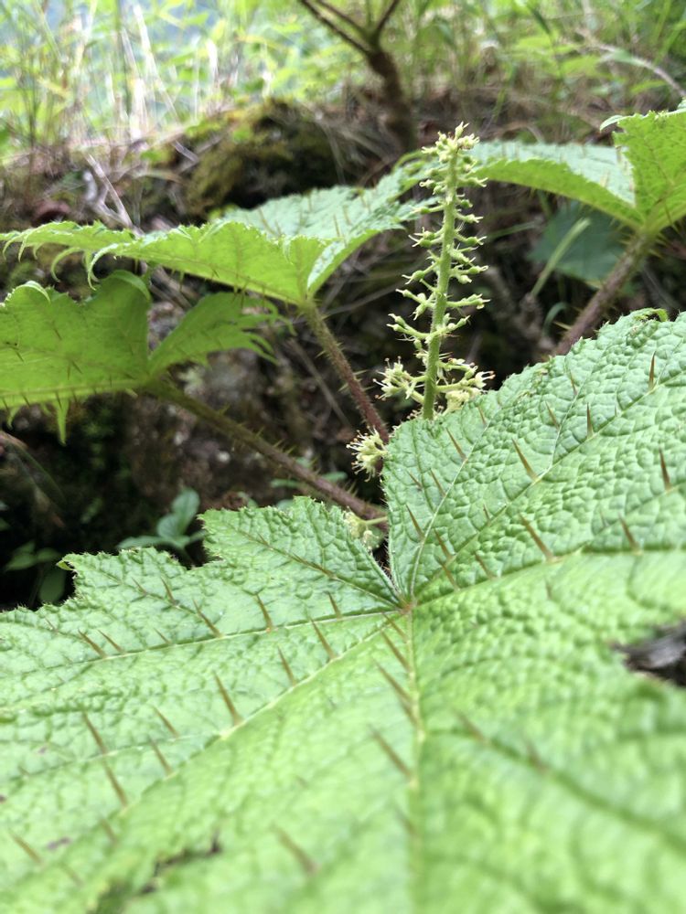 深山の針葉樹林で見かける自己防衛力の強い植物です