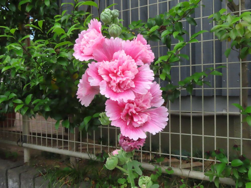 綺麗な八重咲きの「タチアオイ」に出会えました。 パチリ