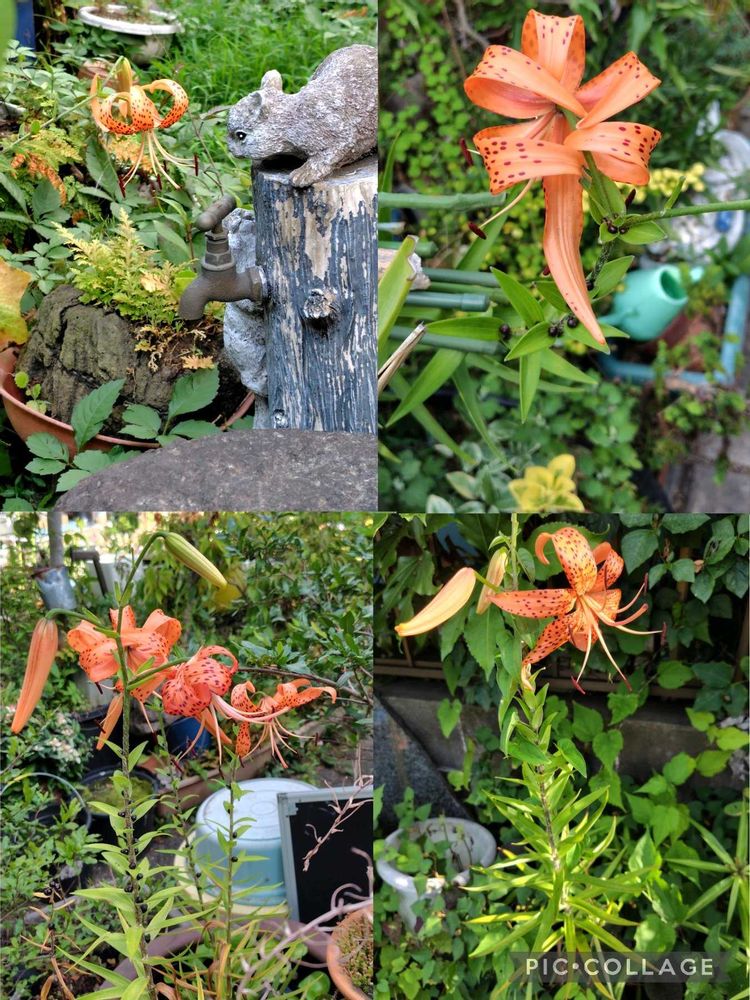 ①一斉に咲きだしてる鬼ユリ みんな こぼれ種です。