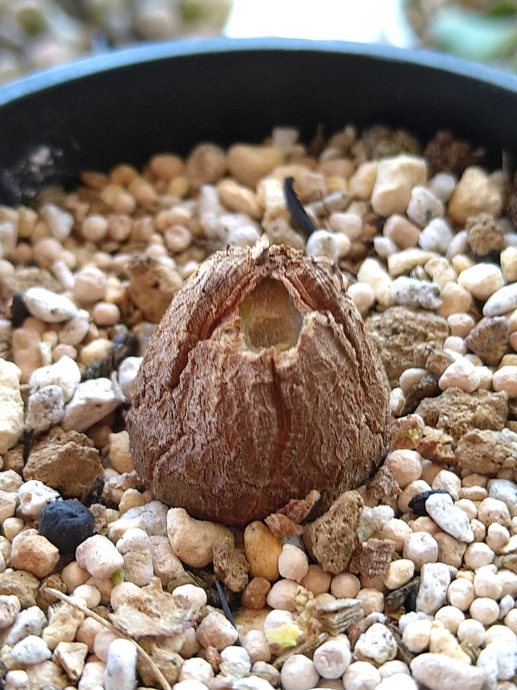 今朝ベランダに出てパトロールしたら実生の亀甲竜に穴が👀