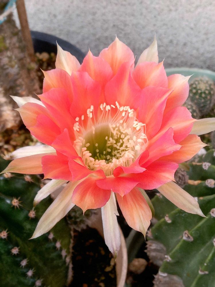 向陽旗咲きました。30年位前に、今は無き堀田千草園で買った花サボテン。
