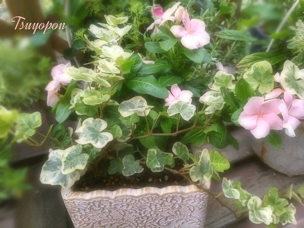 ①②ニチニチソウ・ミスココとヘデラ・雪ほたるの寄せ植え🌷.*