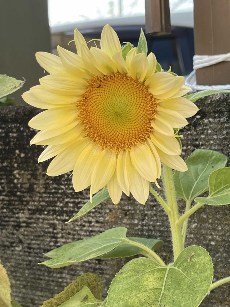 咲きましたね 可愛いですよね クリーム色ですか 我が家は普通のヒマワリですがさきましたよ 1本だけですけどね(๓´˘`๓)♪