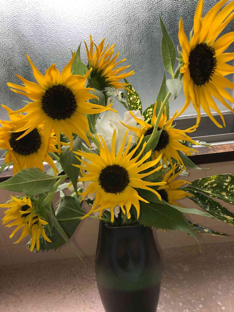 うちのひまわり🌻、台風を2度も受けて、枯れてはいないものの、種が出来ていく感じがしません💦