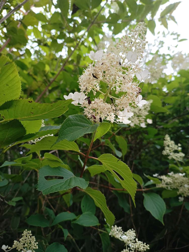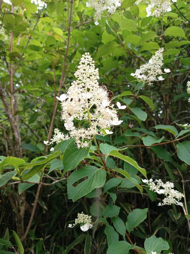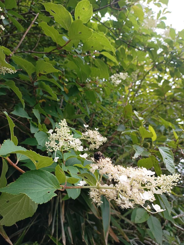 このノリウツギ〜ピラミッド紫陽花みたいな三角形のお花の咲き方が素敵〜虫が来るって事は蜜が凄いのかな???🤭