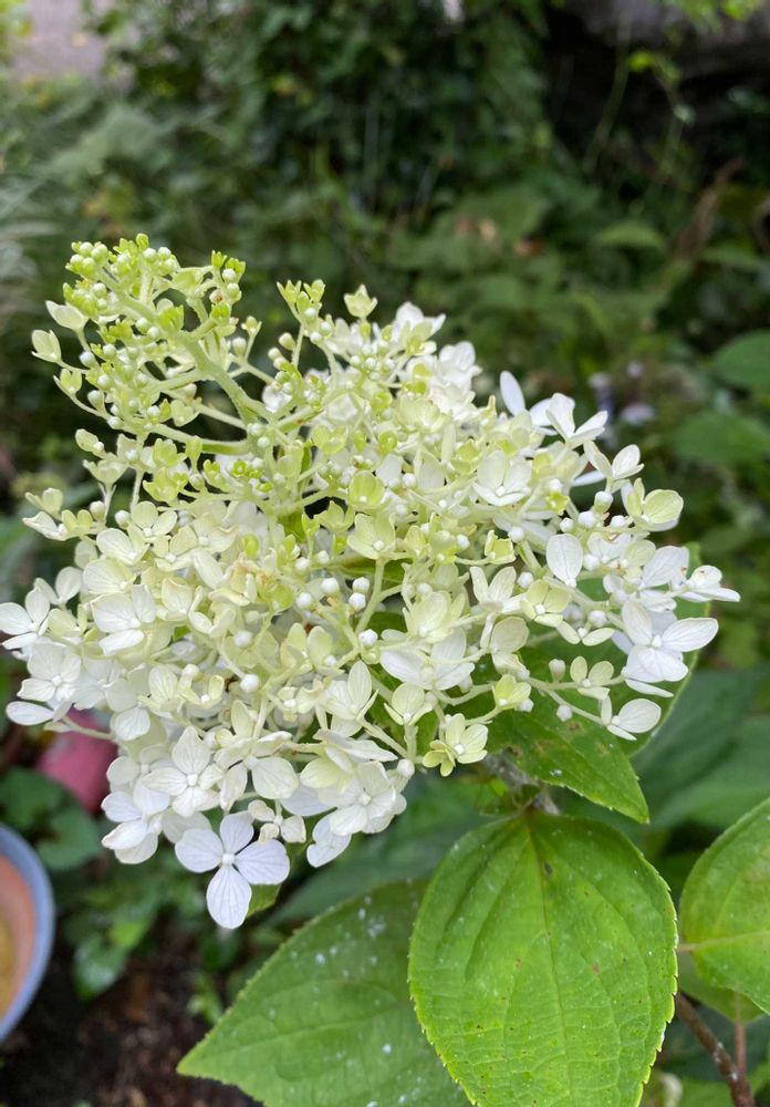 ➡️ピラミッドアジサイMIYUKIがようやく咲き始めました。