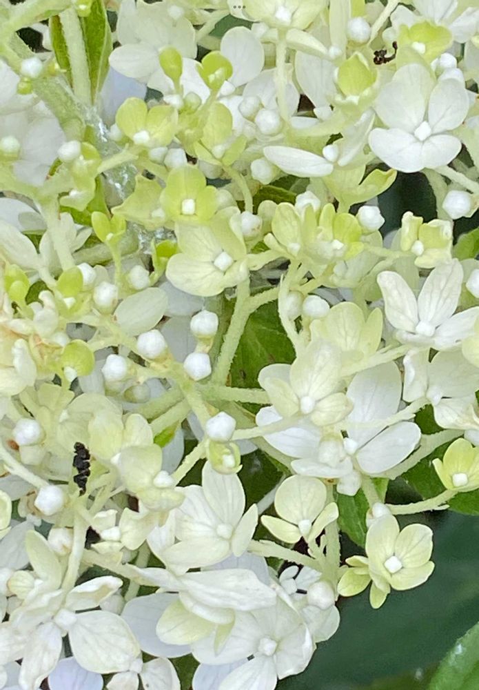 フウセンカズラもピラミッドアジサイも爽やかな白い🤍🌿で楽しんでいます(╹◡╹)♡💕🎶
