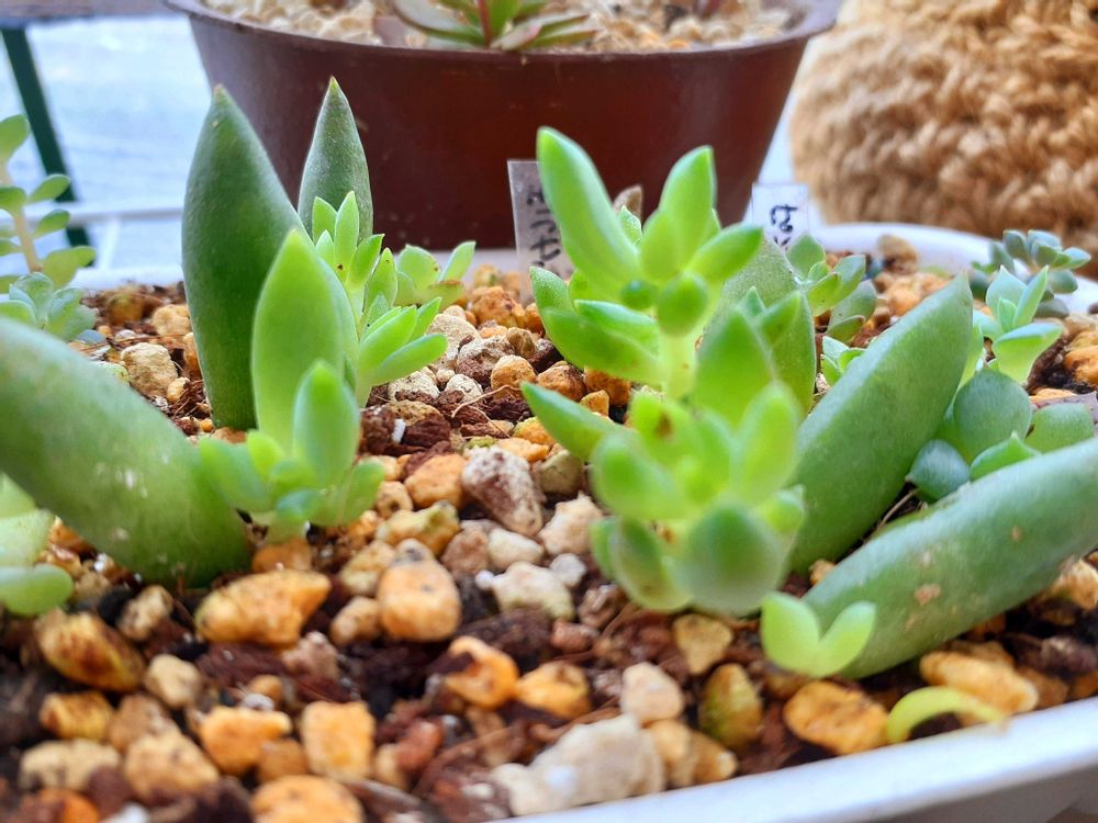 3:モルガニウム 徒長が始まって来ました💦 鉢上げしたいけど置くところがないのでこのまま夏越して欲しいけどどこまで伸びる?